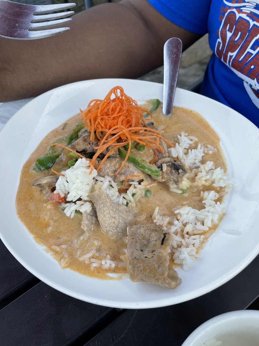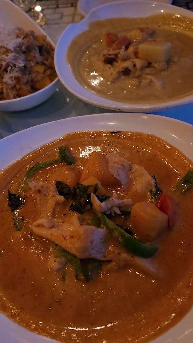Food: Excellent variety of curry they have we had two types one is green curry and yellow curry with naan. Excellent taste. Service: Service is quick and responsive. Server was very welcoming and explain everything we ask. Atmosphere: Enjoyable place to have dinner. This restaurant has open space and indoor sitting area. Interior is impressive and cozy. Perfect for family, couple and business visit. For Thai food, I really loved this place to have delicious food and I will return back.