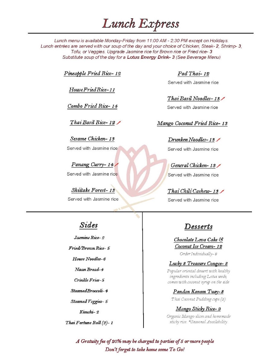 Lotus Asian Bistro Menu